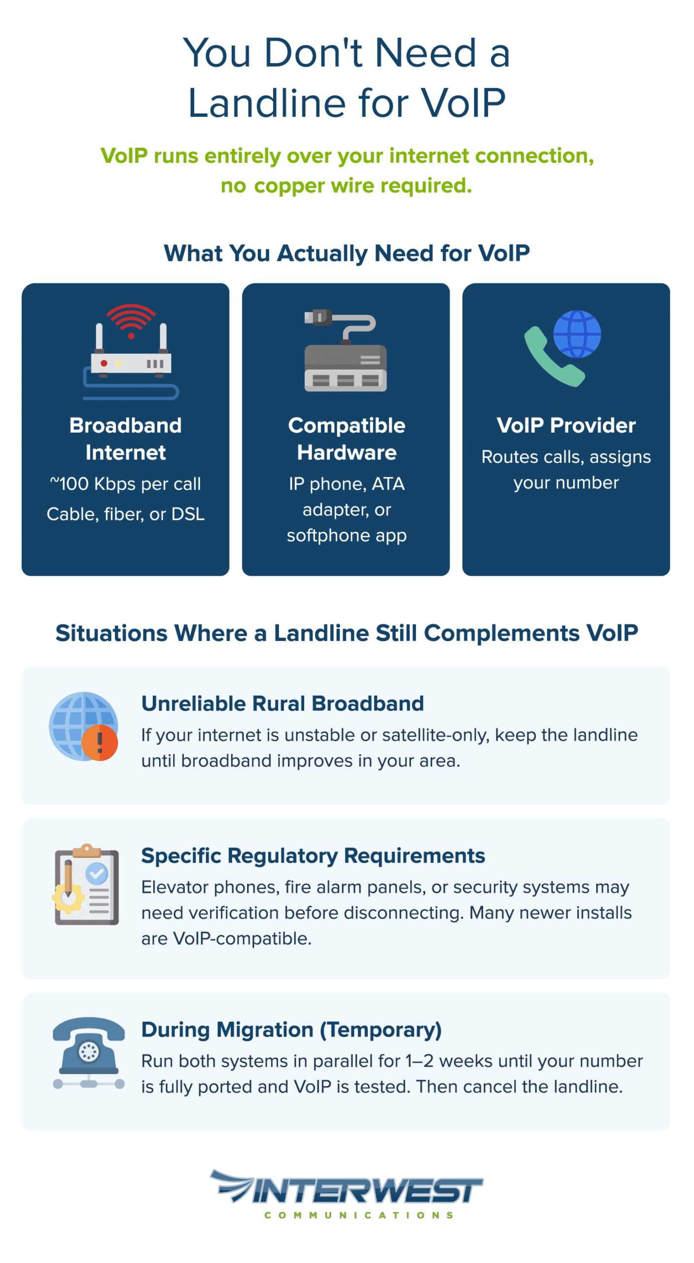 Not sure which setup is right for your situation? Contact Interwest Communications for a free assessment of your current infrastructure and a tailored VoIP recommendation.