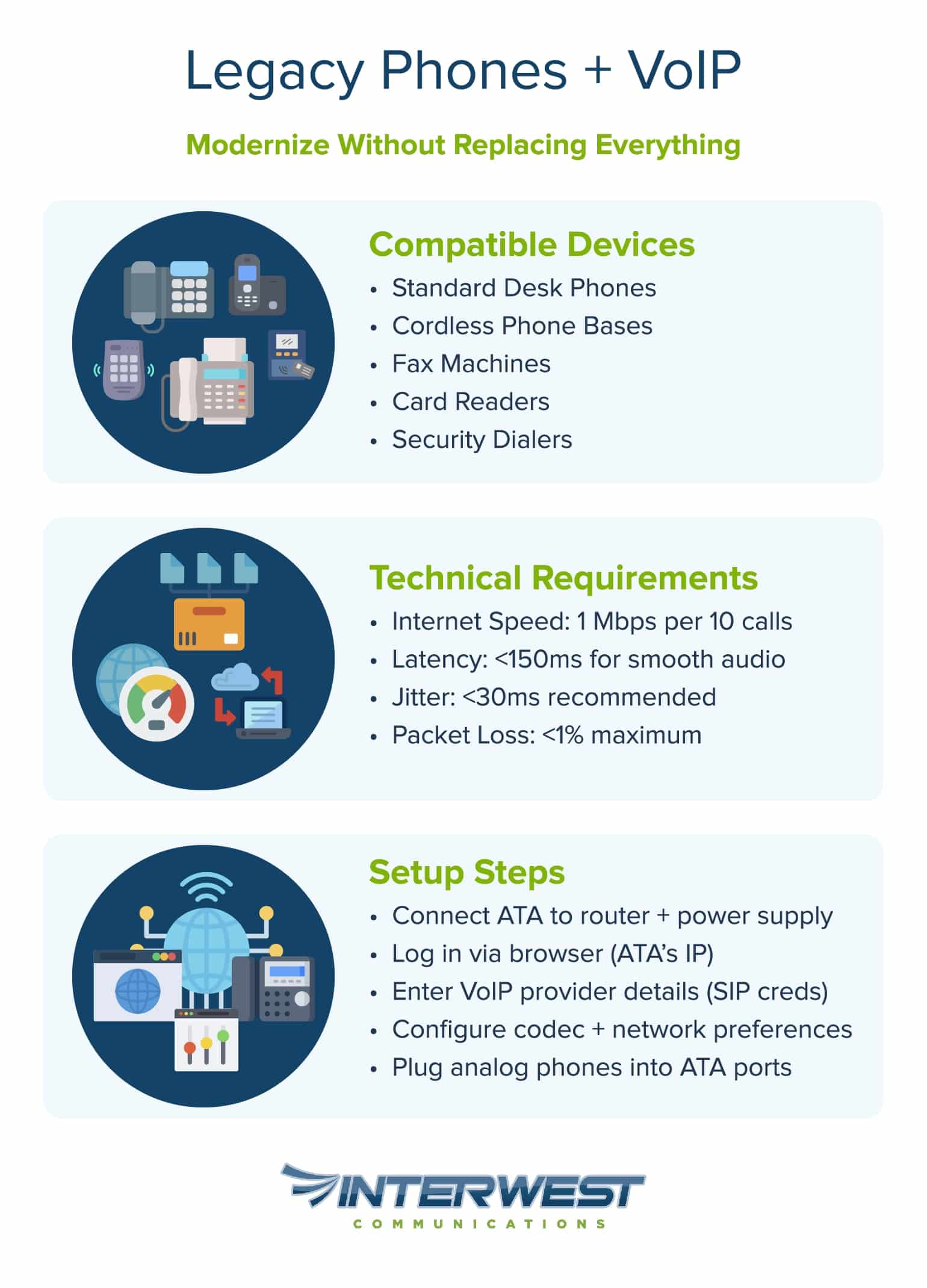 Contact Interwest Communications today to discuss how we can help you adapt your legacy hardware to modern VoIP communications. Our experts will provide a free consultation and customized plan for your business.